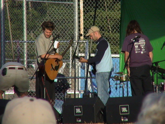 Caption: Trevor Rogers and Brad Gilard of the Clumsy Lovers and some sound guy