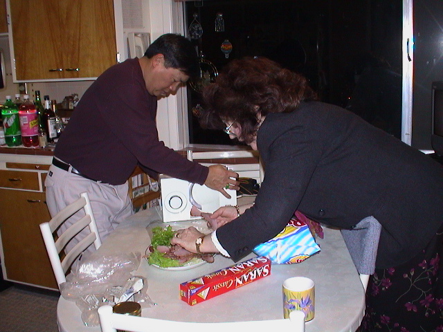 Caption: Greg and Katherine preparing food.