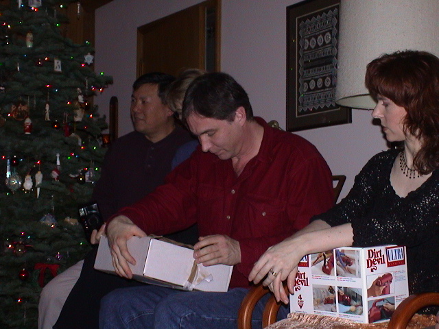 Caption: Dave opening his gift.