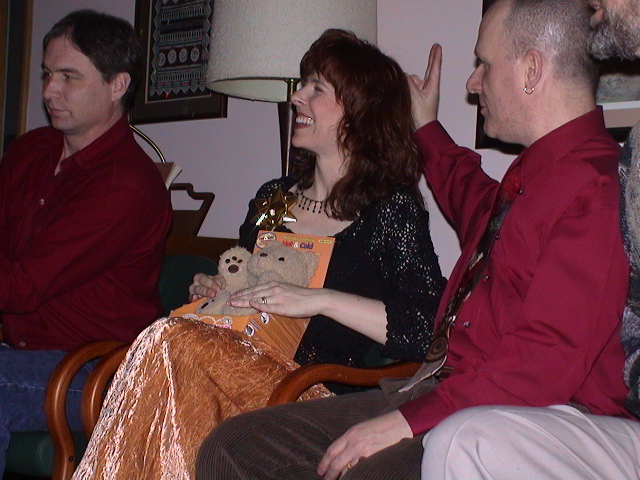 Caption: She seems excited that she got it.