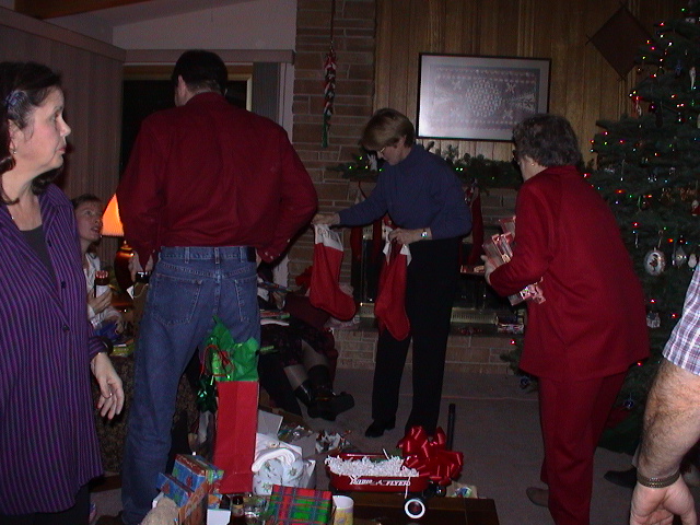 Caption: Everyone handing out stocking stuff.