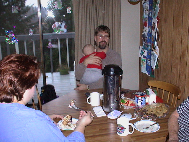 Caption: Eating cinnamon rolls for Christmas Breakfast.
