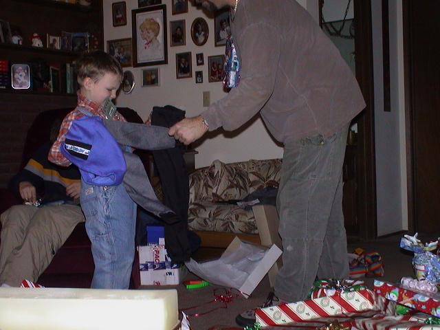 Caption: Uncle David looking at Kaleb's gift.