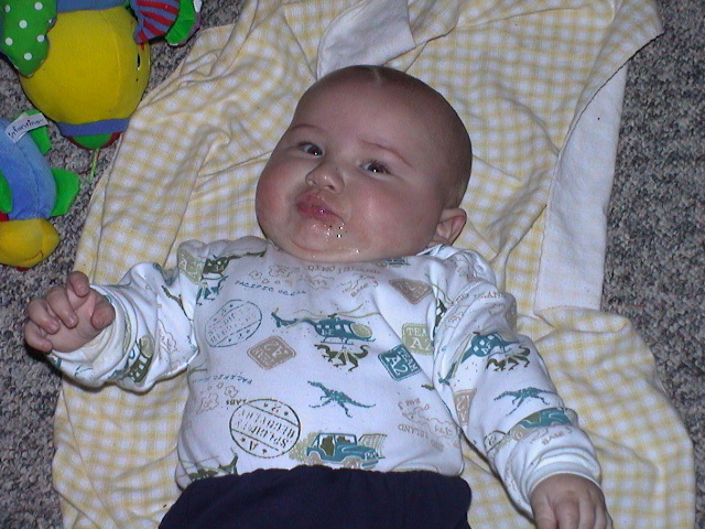 Caption: Logan the day after Christmas, enjoying some floor time.