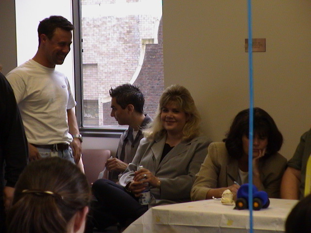 Caption: Mark, Garrett, Jessica and Kathy enjoying the party.