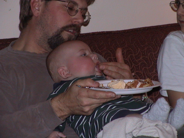 Caption: Logan has his first Pumpkin Pie...don't tell mom.
