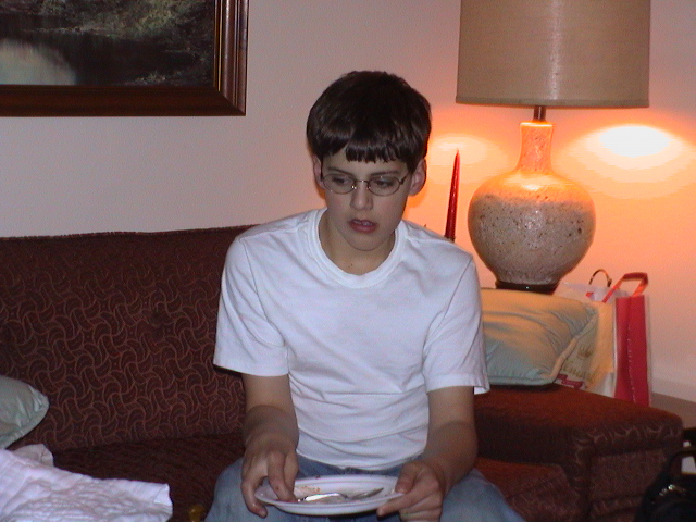Caption: Tyler devoured another piece of pie.