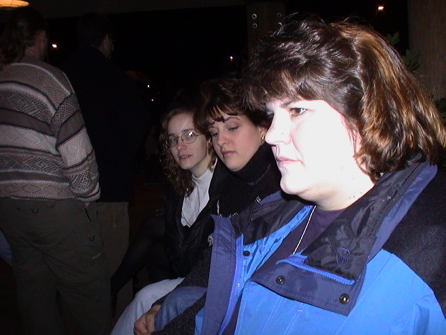 Caption: Beth, Monica and Sandra waiting for dinner outside the Claimjumper.