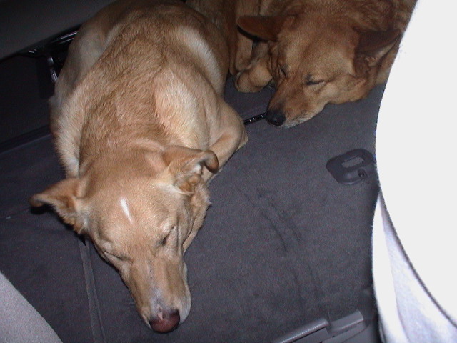 Caption: The dogs sacked out.