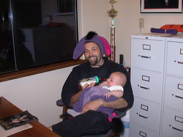 Caption: Mr. Graves with Logan's Eeyore hat on.