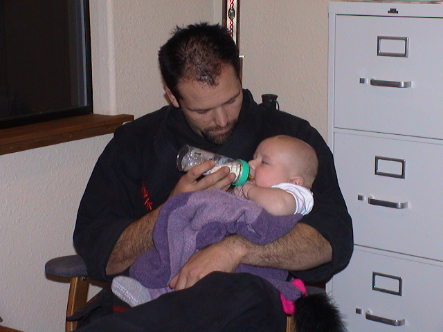Caption: Logan enjoying being cuddled by Mr. Graves.