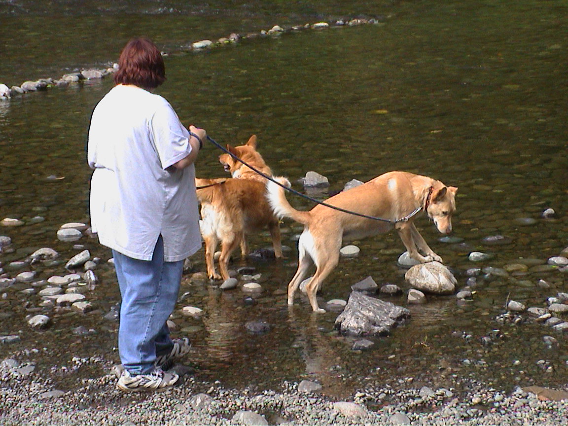 Caption: Sandra, Baja and Maya in the Satsop.