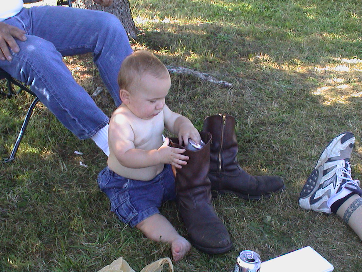 Caption: Now the cans are in Grandpa Rick's boots.