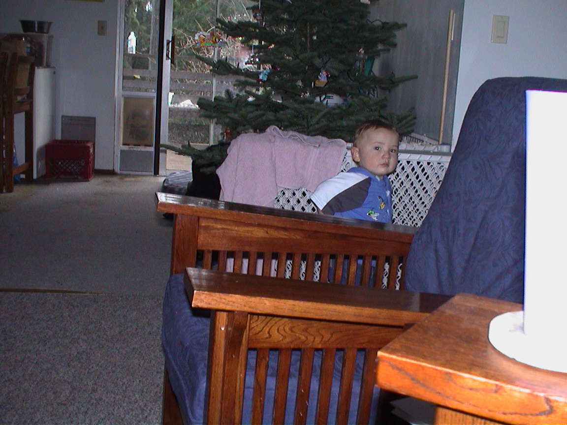 Caption: Logan kind of standing in front of our Christmas Tree.