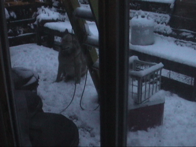 Caption: Snow on the back deck.
