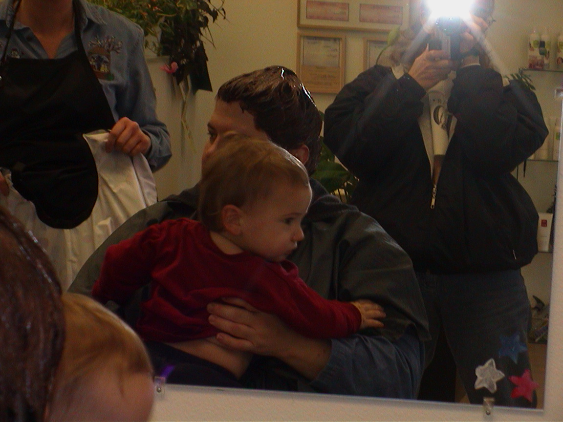 Caption: Mommy holding Logan getting ready for his first haircut.
