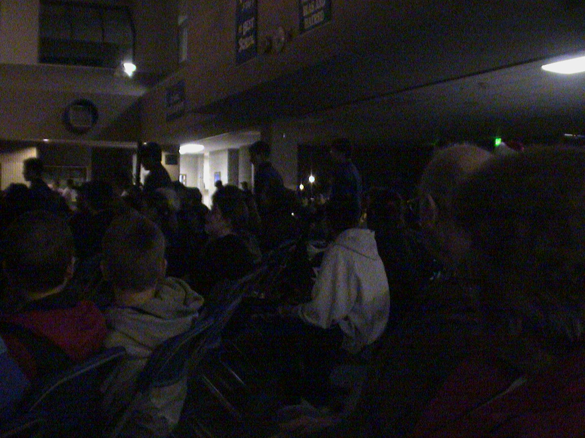 Caption: Very dark picture of Tyler walking by.