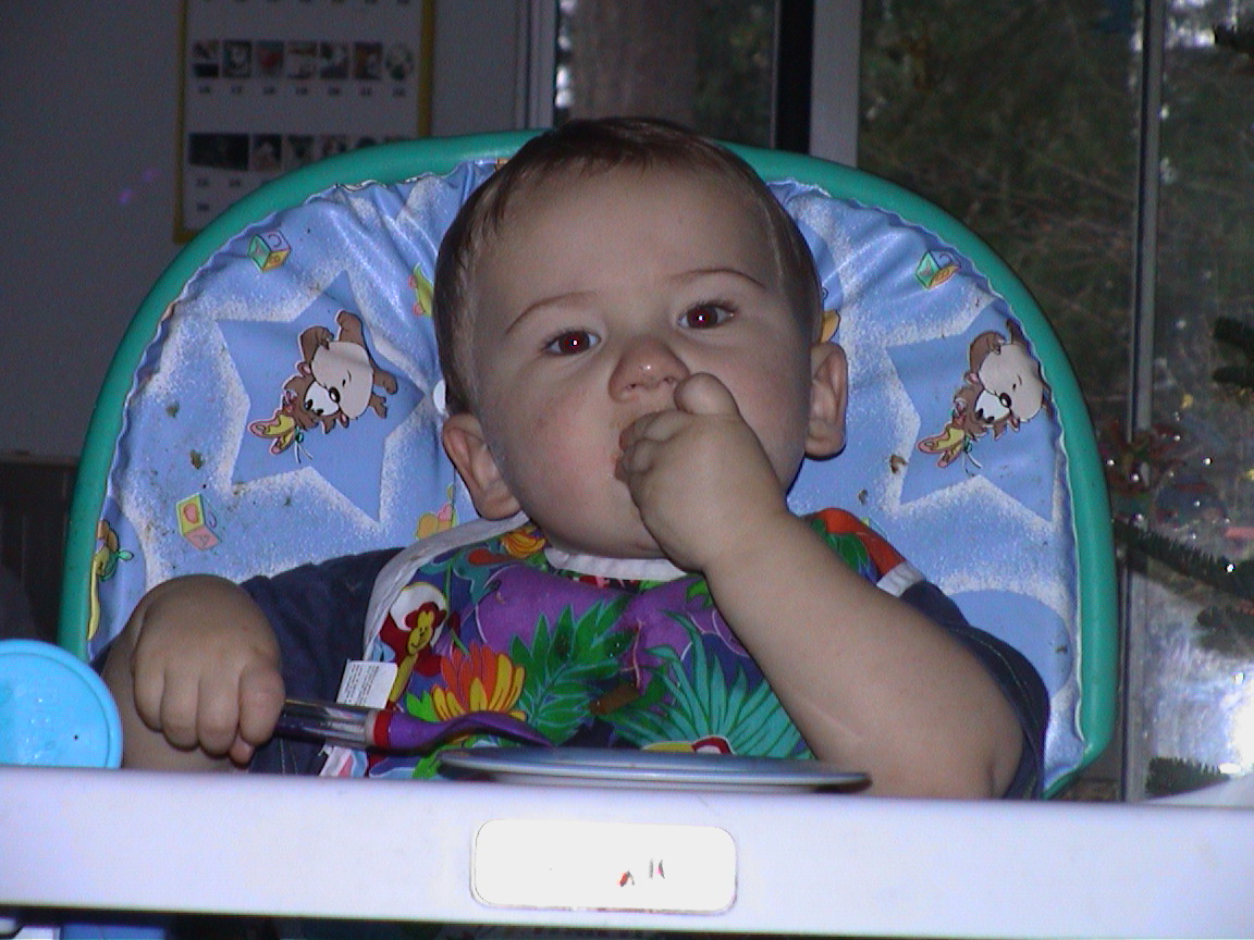 Caption: Logan eating soup.