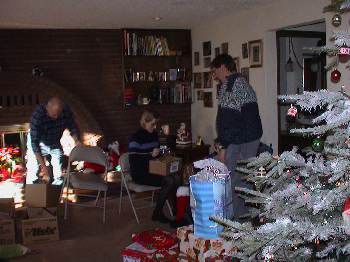 Caption: Stockings being distributed and opened.