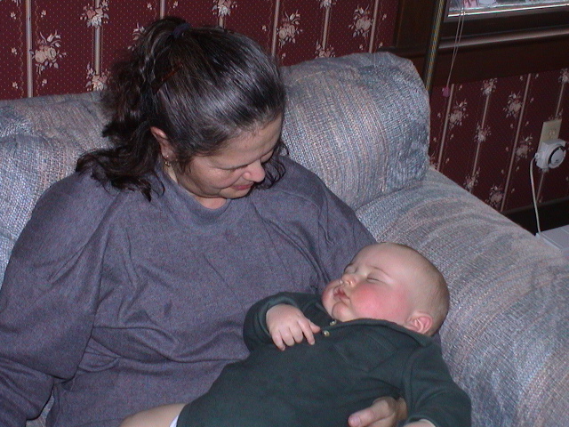 Caption: Grandma Zoe holding a tired boy on Grandpa Rick's birthday.