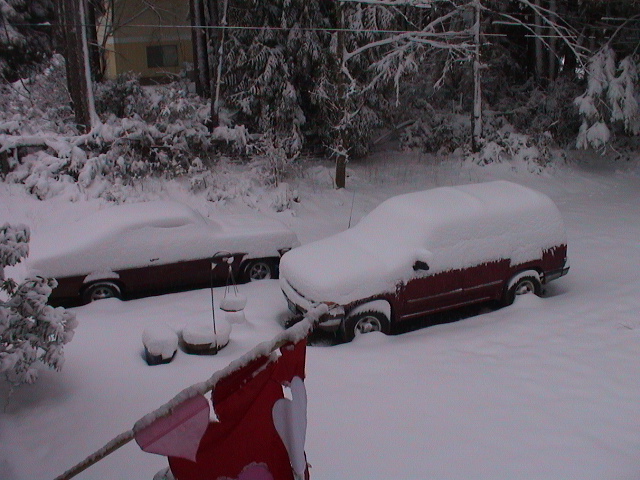 Caption: Nope, Timm did not go, note both cars in the driveway.