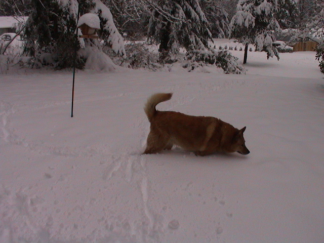 Caption: Baja out enjoying the snow...the dogs love it!
