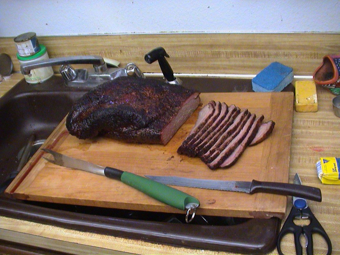 Caption: His first BBQ/smoked beef brisket.