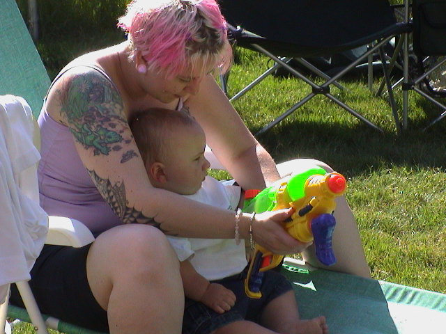 Caption: Logan and his first squirt gun.