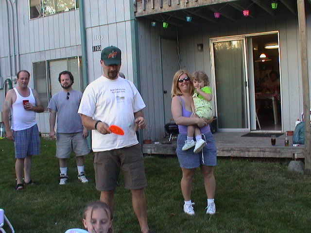 Caption: Eric, Jerry, Pasha (playing) Debbie and Maddie.