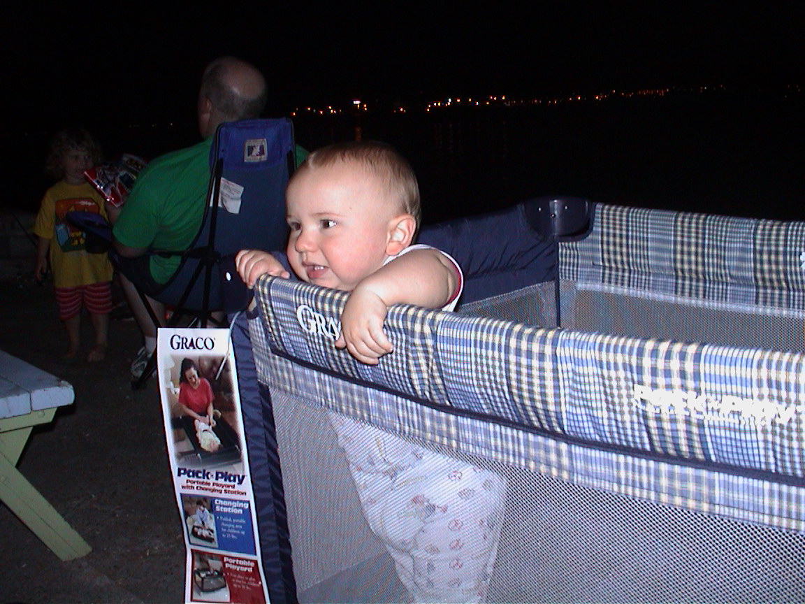 Caption: Logan in his playpen.