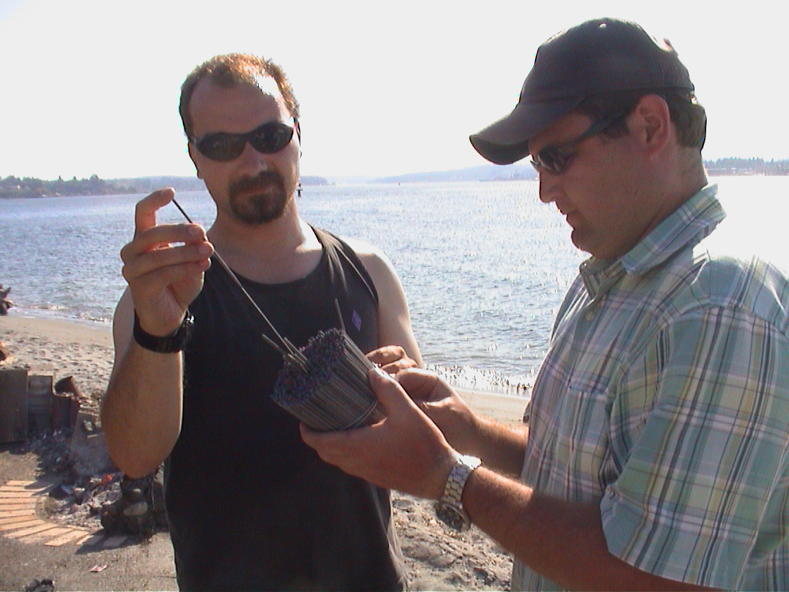 Caption: Pasha and Jeff building the sparkler bomb.