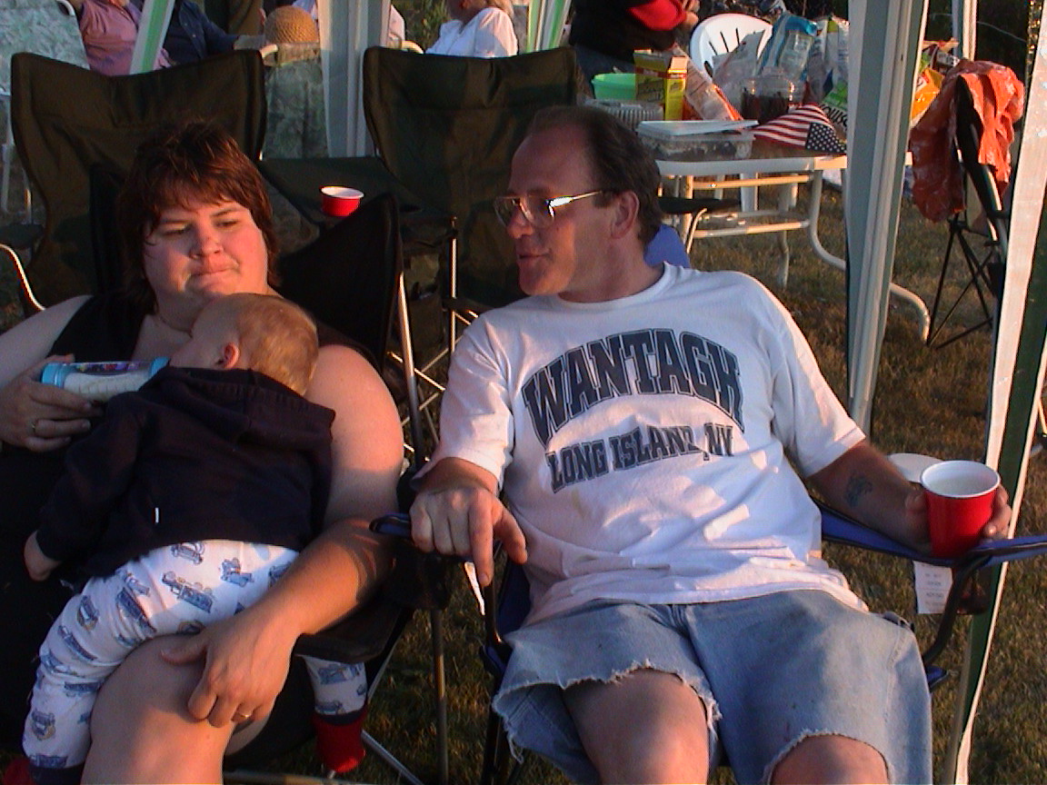 Caption: Sandra holding Logan and Eric visting.