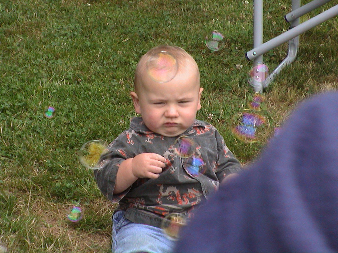 Caption: Logan enjoying bubbles.