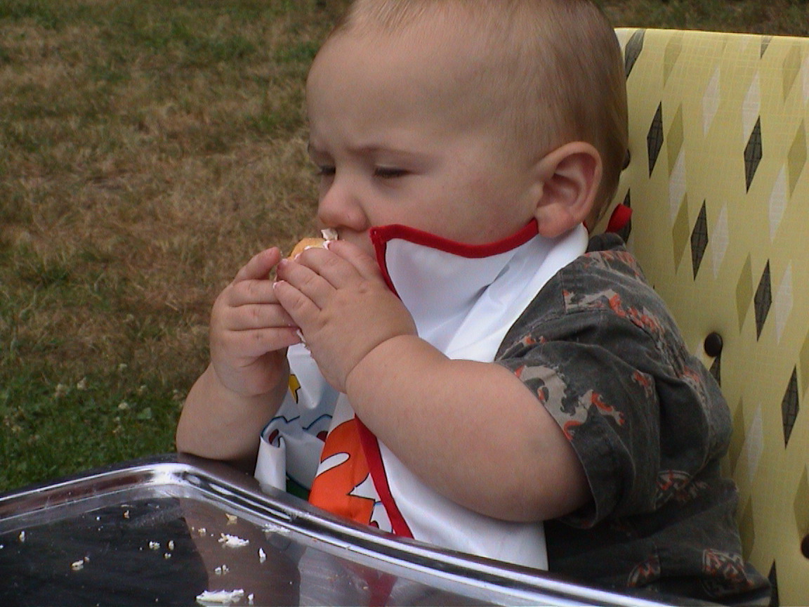 Caption: I think Logan likes his cupcake.