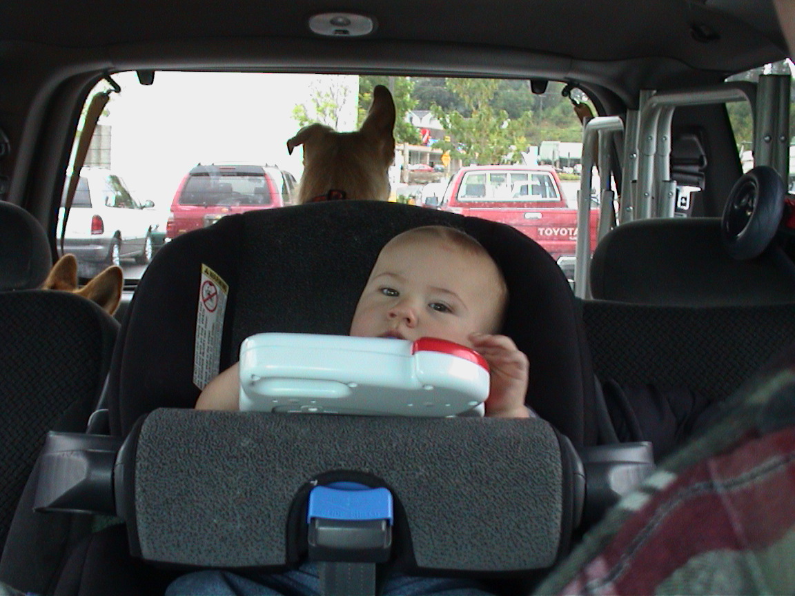 Caption: Logan in his car seat.