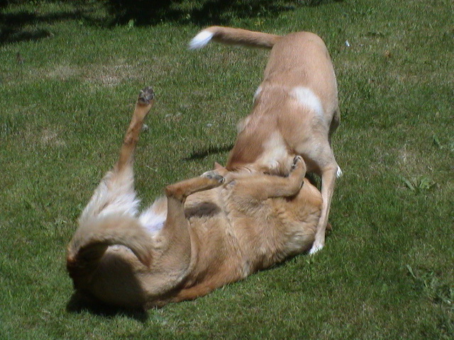 Caption: Maya attacking Pooh...well, they are just playing.
