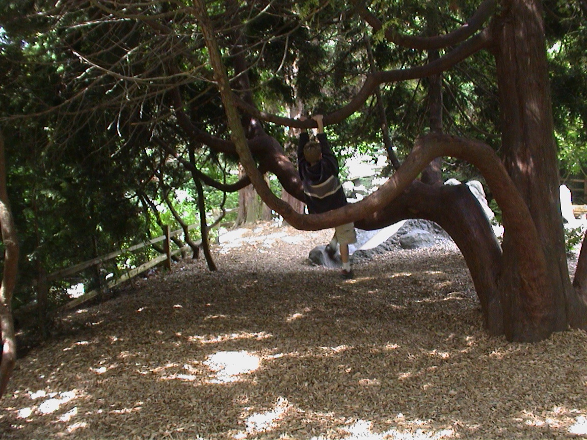 Caption: Erik climbing a tree.