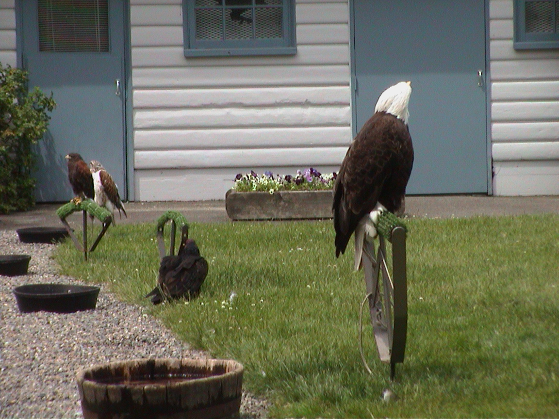 Caption: Birds of prey. Bald Eagle, Perguine Falcon, and a couple of hawks.