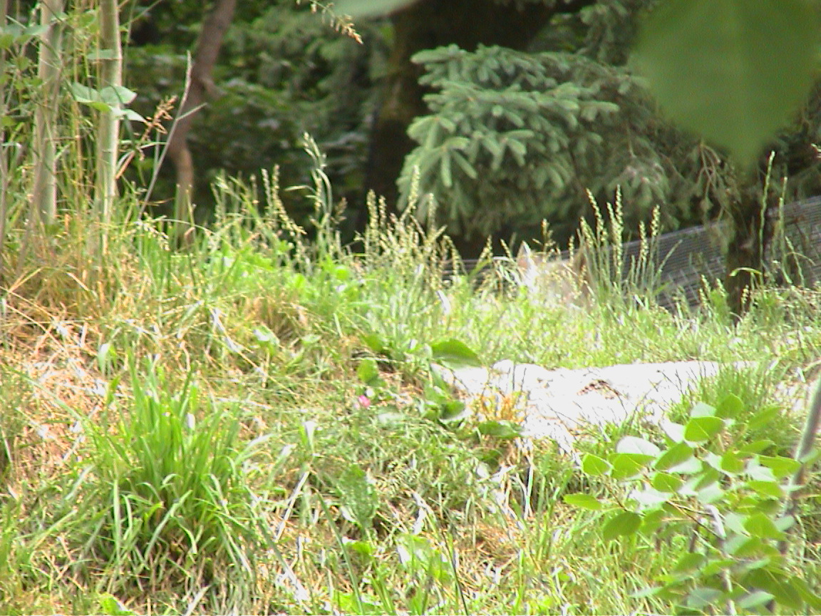 Caption: Can you see the wolf? He is in the grass on the right side of the screen.