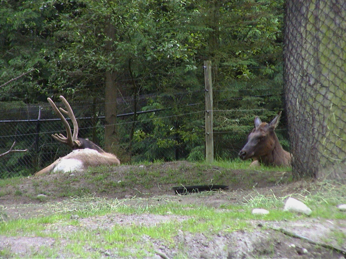 Caption: A bull and a cow elk.