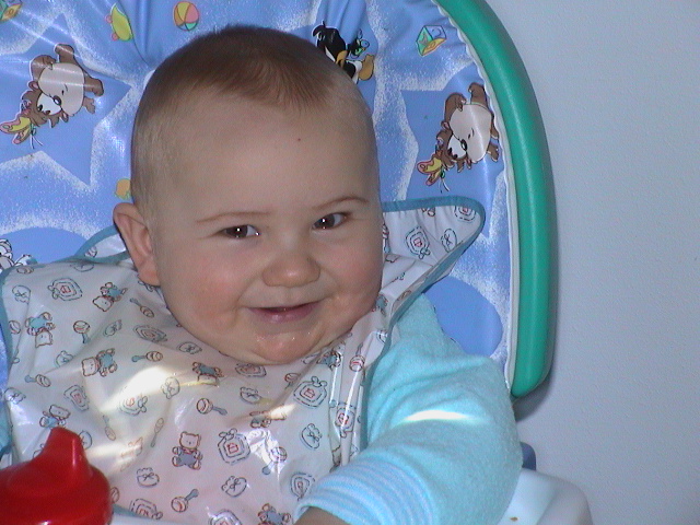 Caption: Logan getting ready for breakfast.
