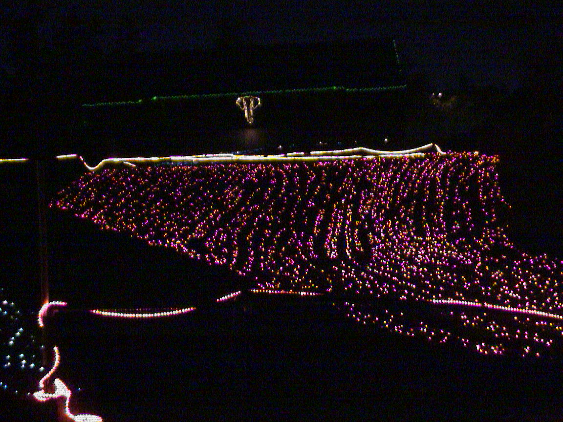 Caption: Can you see the elephant all lit up in the background?