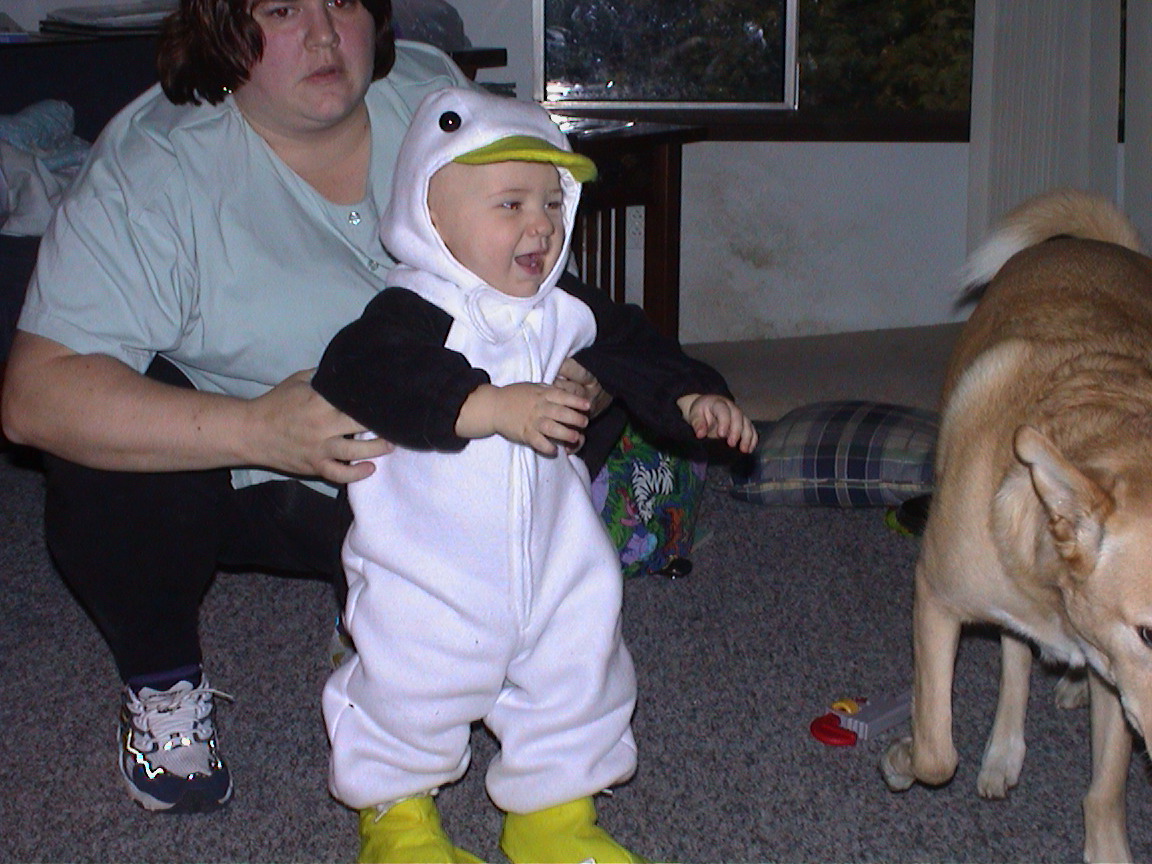 Caption: Mommy, Logan (as Wheezy the Penguin) and Maya.