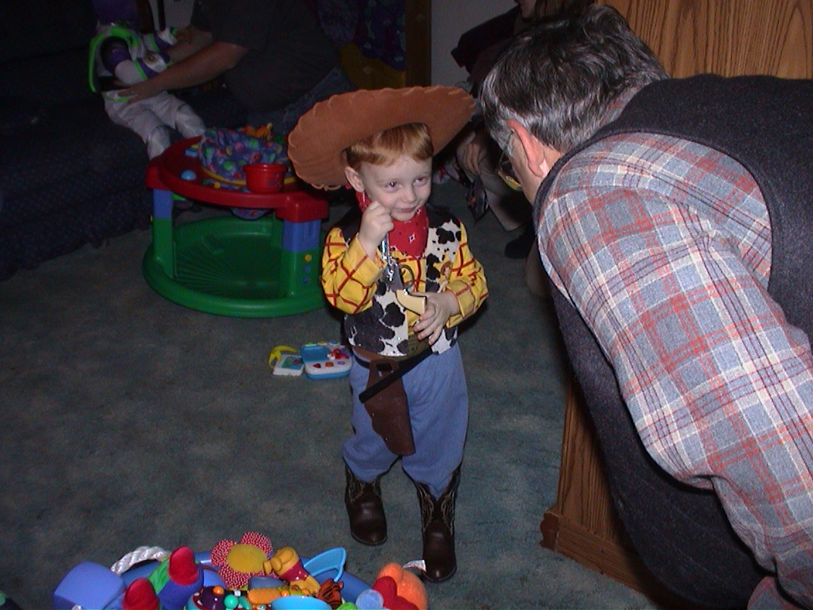 Caption: Jared (as Woody the Sheriff) and Grandpa Kip.