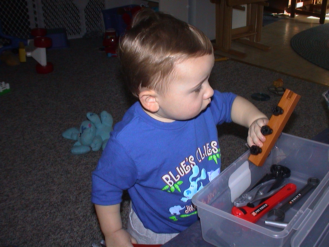 Caption: Logan loves his tools.