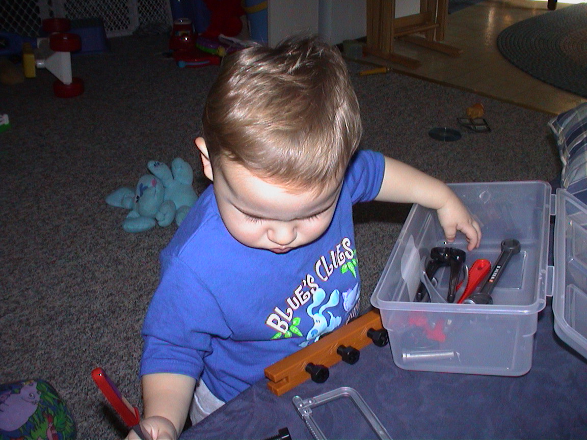 Caption: Logan and his tools.
