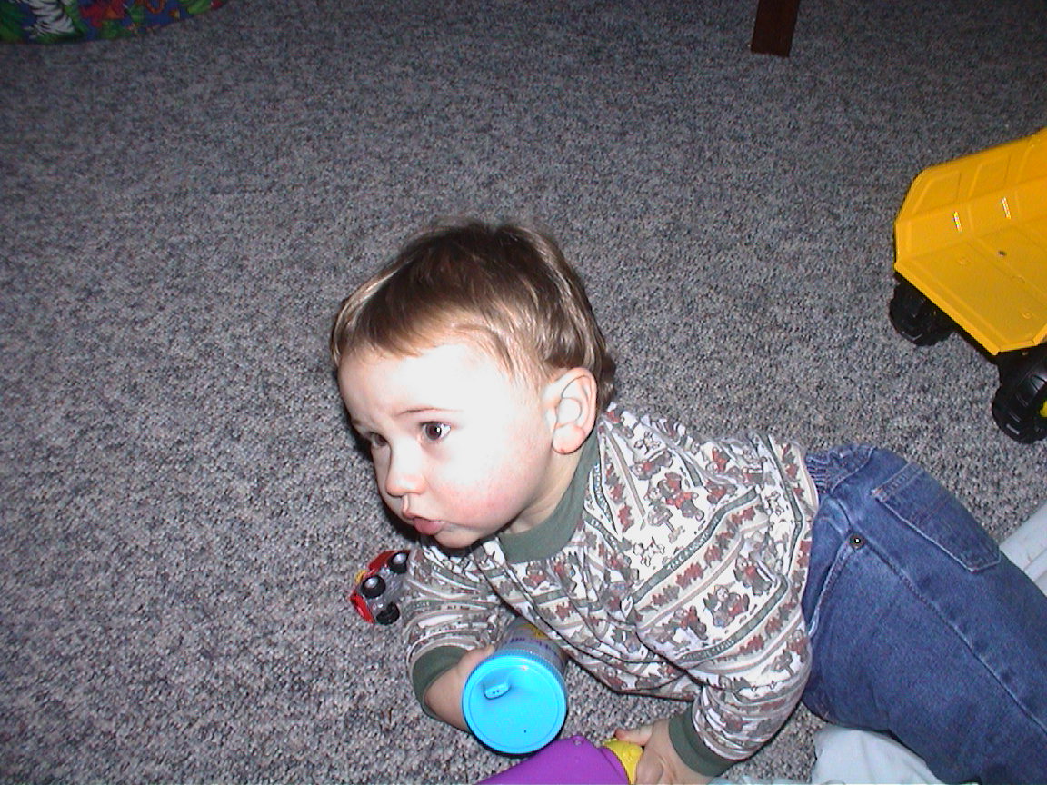 Caption: Logan was posing for a picture Walter was helping mommy take.
