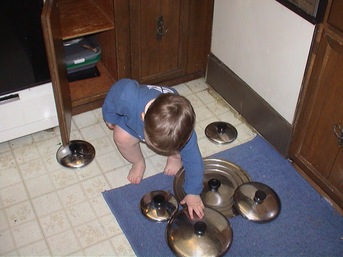 Caption: Oh, I see...you wanted all the lids out of the cupboard.