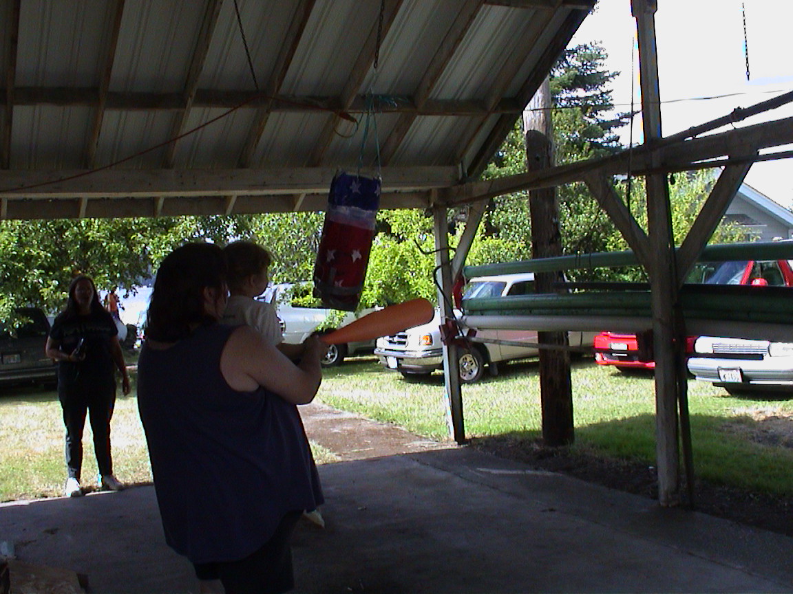 Caption: Trying to help Maddie break the pinata.