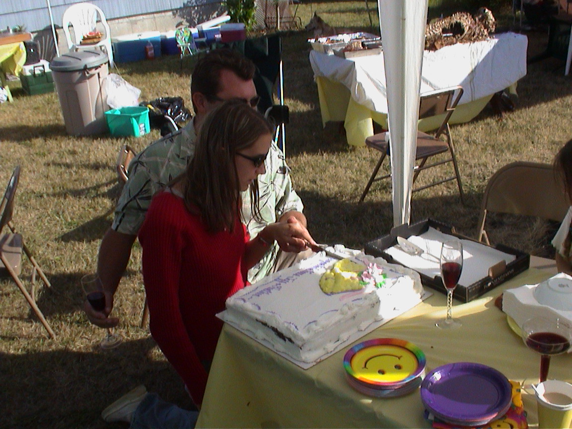 Caption: Cutting cake.